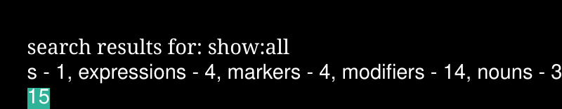 Rather than having "Searching for: show:all" it could display "Showing all words".